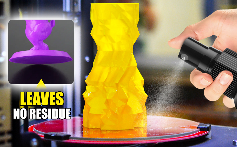 Die Anwendung dieses Bettklebers könnte nicht einfacher sein. Vor Gebrauch gut schütteln, dann in 20-30 cm Entfernung sprühen und gleichmäßige Schichten auftragen. Nach dem Druck löst sich Ihr Modell mühelos ab, und Rückstände können leicht mit Wasser entfernt werden. Ein durchdachtes Design sorgt dafür, dass Sie sich keine Sorgen um komplizierte Reinigungsprozesse machen müssen.
