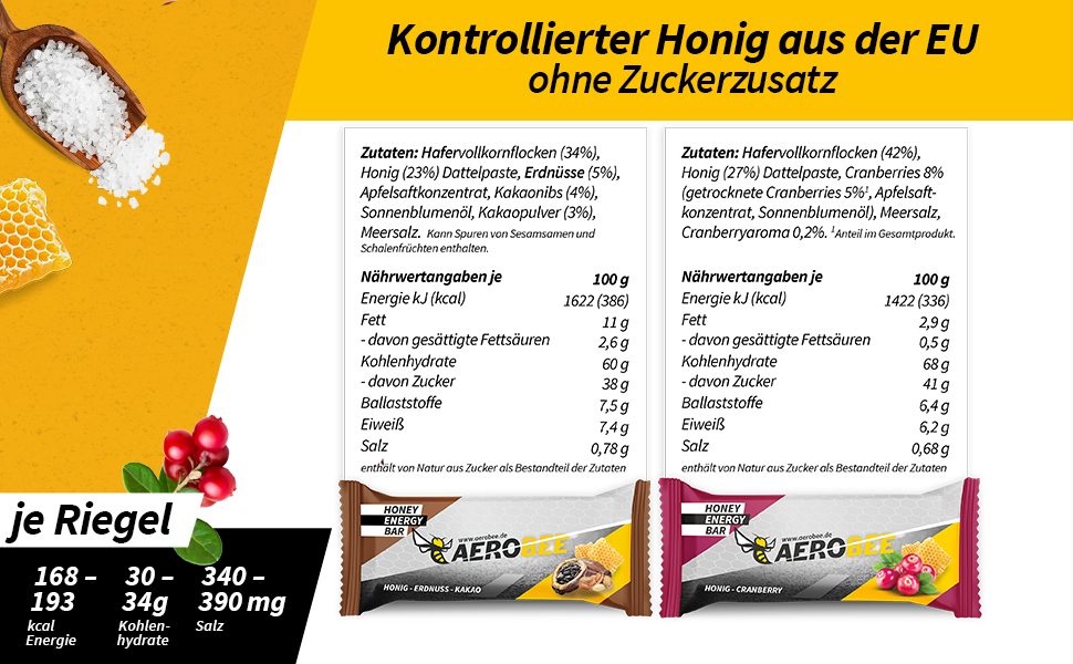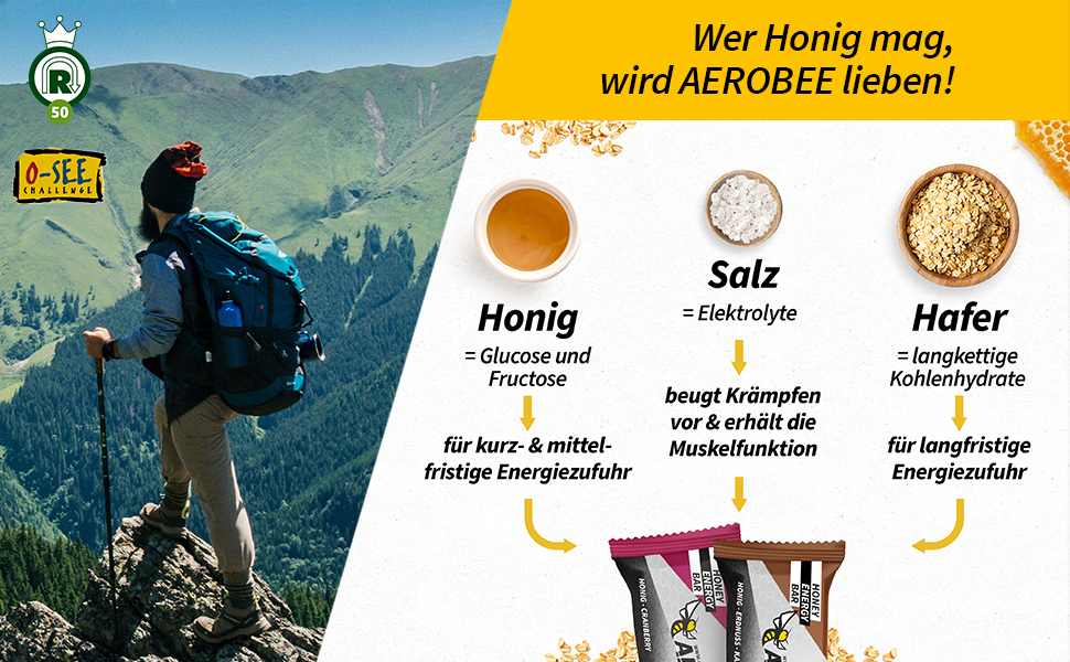 AEROBEE Energieriegel Probierpaket - 4 leckere Sorten ohne Zucker für Wandernahrung & als MahlzeitenersatzAEROBEE Energieriegel Probierpaket – 4 leckere Sorten ohne Zucker für Wandernahrung & als Mahlzeitenersatz
