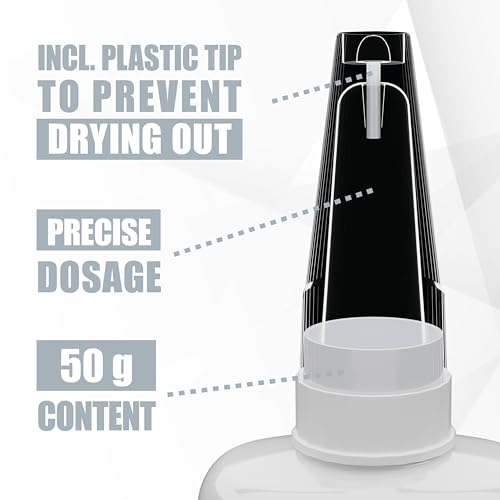 Mit einem Inhalt von 50 g bietet der Kleber fünffach mehr als herkömmliche Tuben, was ihn zur idealen Wahl für Vielnutzer macht. Ob Serienverklebung, Modellbau, DIY-Projekte oder mechanische Reparaturen – der großvolumige Kleber stellt sicher, dass immer ausreichend Material zur Verfügung steht.
