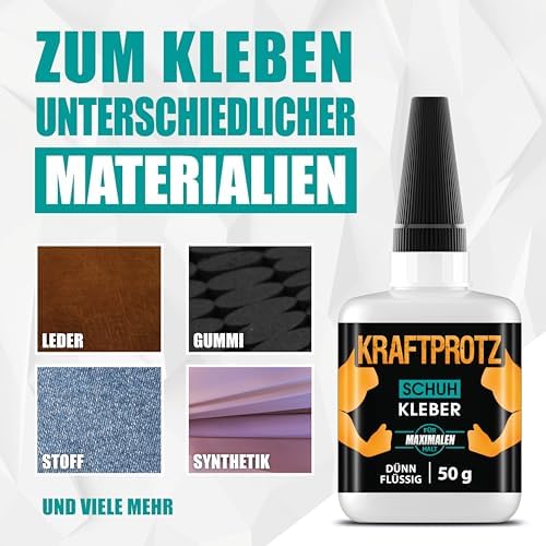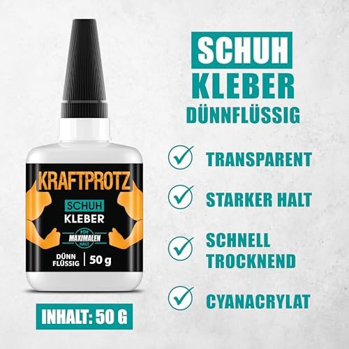 Der Schuhkleber “Kraftprotz” sorgt für langlebige und strapazierfähige Klebeverbindungen. Er trocknet vollständig aus, ohne klebrige Rückstände zu hinterlassen. So ist der Kleber jederzeit einsatzbereit und muss nicht mühsam entfernt werden – eine perfekte Lösung für alle, die Wert auf Qualität und Haltbarkeit legen.