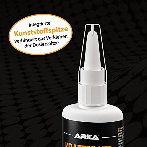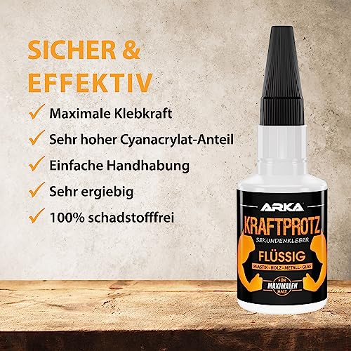 Dank seiner einzigartigen Eigenschaften ist der ARKA Kraftprotz ein super Kleber, der nicht nur schnell trocknet, sondern auch hitzebeständig, wetterfest und wasserfest ist. So können Sie in kürzester Zeit stabile und langlebige Verbindungen schaffen. Die Anwendung ist einfach und komfortabel – ideal für jede Gelegenheit, sei es im Haushalt, in der Werkstatt, auf Baustellen oder für Bastelarbeiten.