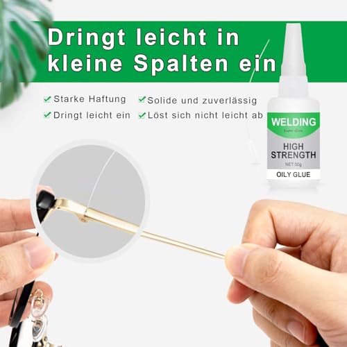 Mit einer Trocknungszeit von nur 15–30 Sekunden ermöglicht unser Oily Glue eine sofortige und stabile Verbindung. Kein langes Warten mehr auf die Trocknung! Sie können direkt nach dem Kleben weiterarbeiten und Ihre Projekte in kürzester Zeit abschließen. Ideal für schnelle Ausbesserungen und kreative DIY-Projekte.