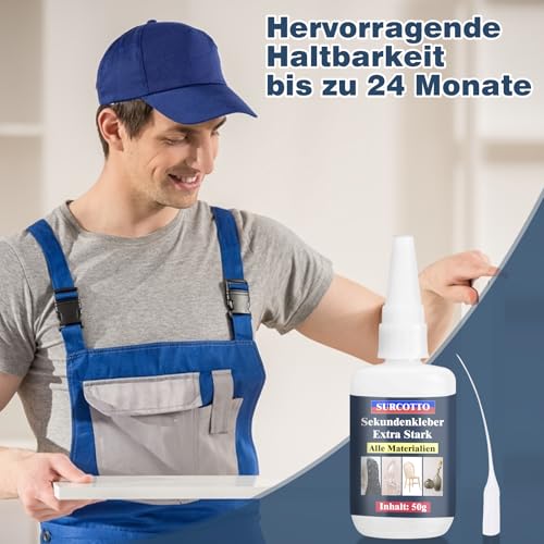 Der Surcotto Extra Stark Sekundenkleber überzeugt durch seine außergewöhnlich schnelle Aushärtung. Innerhalb von nur 15 Sekunden sind lose Teile wieder fest miteinander verbunden. Die vollständige Aushärtung erfolgt nach nur 10 Stunden, was eine langfristige Nutzung der geklebten Objekte garantiert. Ideal für alle, die schnelle und zuverlässige Ergebnisse suchen.