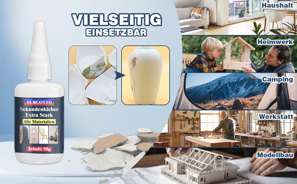 Dieser Sekundenkleber ist ein wahres Multitalent! Egal ob Kunststoff, Textil, Glas, Holz, Metall oder sogar für den Modellbau – unser Sekundärkleber ist die perfekte Lösung für vielfältige Klebeanwendungen. Besonders für Hobbybastler und Profis ist er unerlässlich, da er starke Verbindungen in kürzester Zeit ermöglicht.