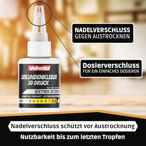 Der Nadelverschluss sorgt dafür, dass der Kleber nicht austrocknet und wiederverschließbar ist. So können Sie den Inhalt bis auf den letzten Tropfen nutzen, ohne sich Sorgen um eine Verschwendung machen zu müssen. Die feine Spitze ermöglicht ein präzises Auftragen, was bei filigranen 3D Modellen besonders wichtig ist.