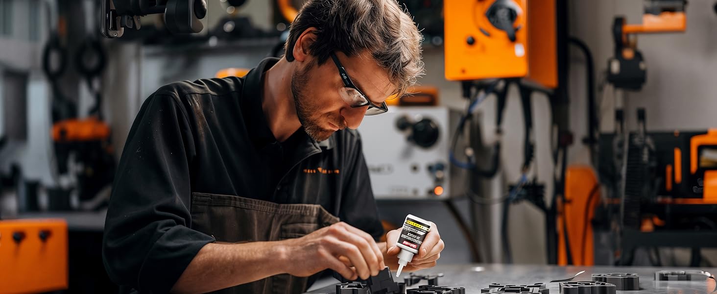 Um die besten Ergebnisse zu erzielen, reinigen und entfetten Sie die zu verklebenden Teile gründlich. Tragen Sie dann den Kleber auf die Klebestelle auf und drücken Sie die Teile zusammen. Die Aushärtung erfolgt in Sekunden, wobei die vollständige Aushärtung, die die Endfestigkeit erreicht, innerhalb von weniger als einer Stunde abgeschlossen ist.