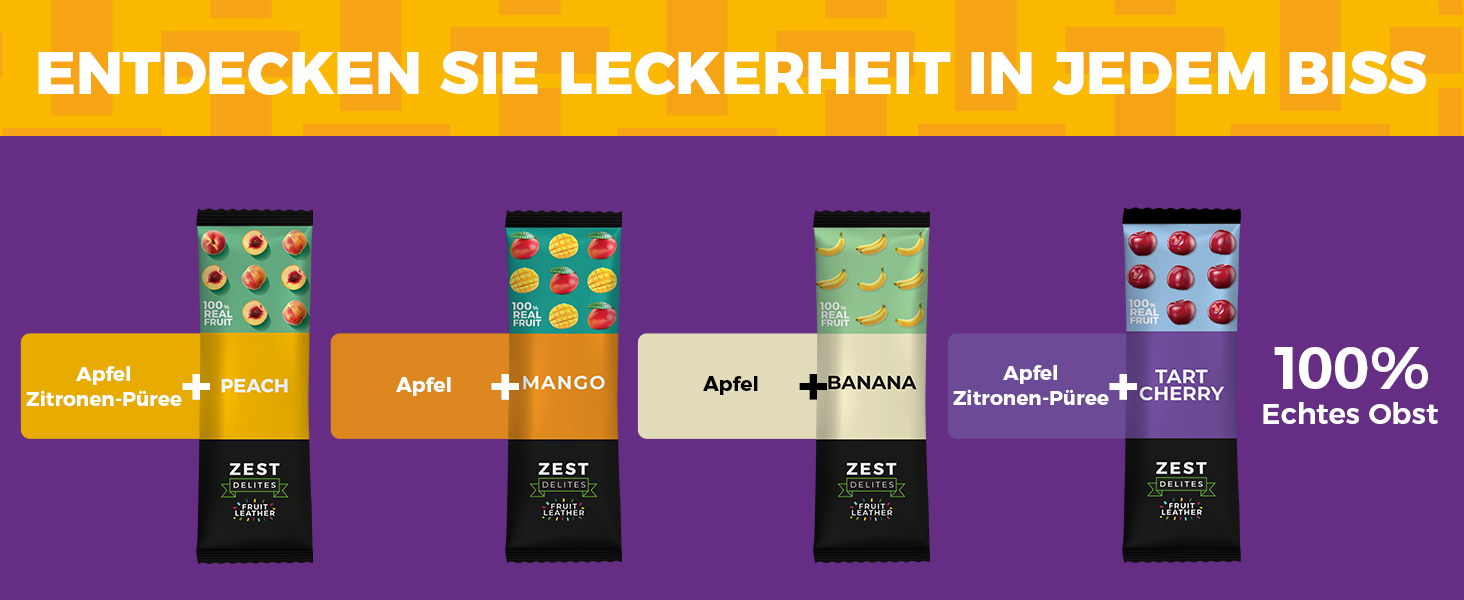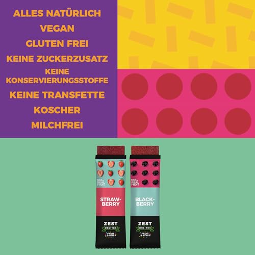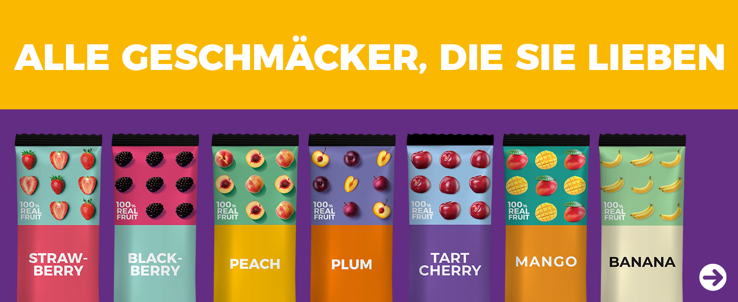 • Echte Früchte für optimalen Genuss: Unsere Zuckerfreien Frucht-Bars enthalten einen hohen Anteil an unraffinierten, echten Früchten wie Äpfeln, Erdbeeren und Aprikosen, was den natürlichen Geschmack betont.