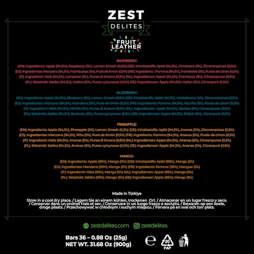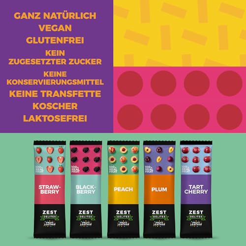 Zest Delites Fruchtriegel – Glutenfreie, zuckerfreie Snacks mit getrockneten Früchten für unterwegs, 25 g, 36 Stück ErdbZest Delites Fruchtriegel – Glutenfreie, zuckerfreie Snacks mit getrockneten Früchten für unterwegs, 25 g, 36 Stück Erdb